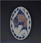 • 清青花釉里红鲤鱼纹瓷盘